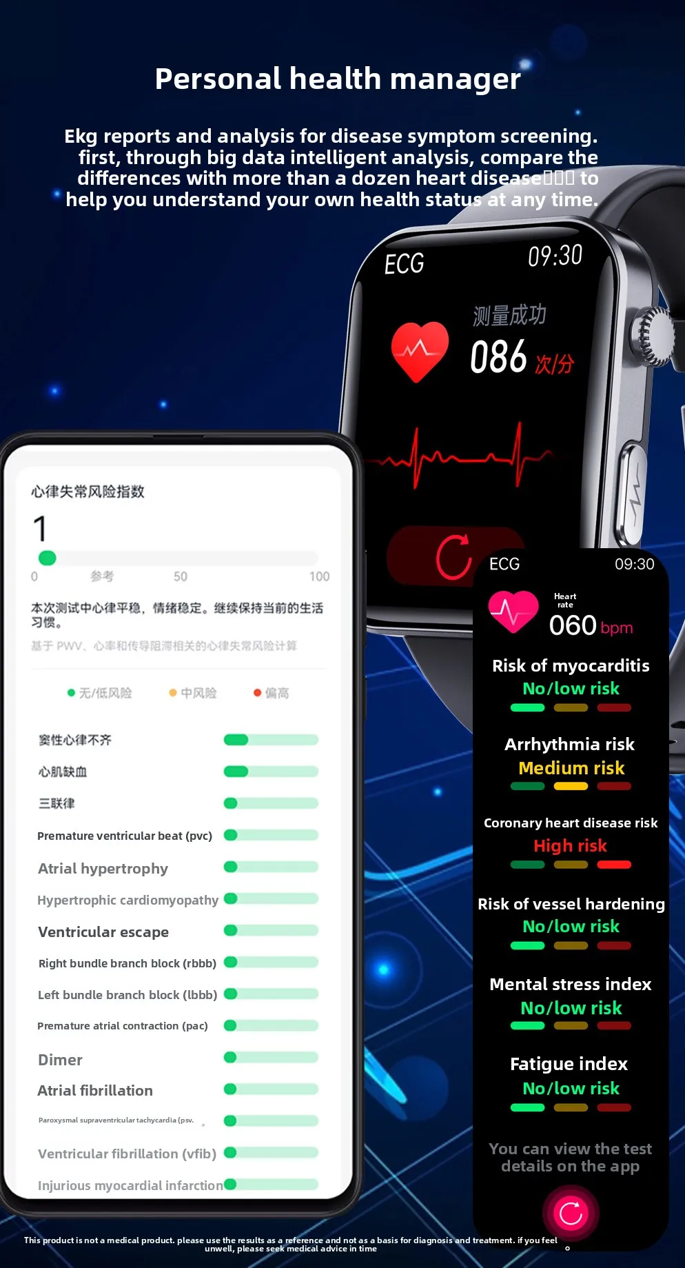 Montre connectée Mini F300 : détection de la fréquence cardiaque en continu, surveillance ECG, appel d'urgence SOS, alarme, écran carré, protocole SDK iOS