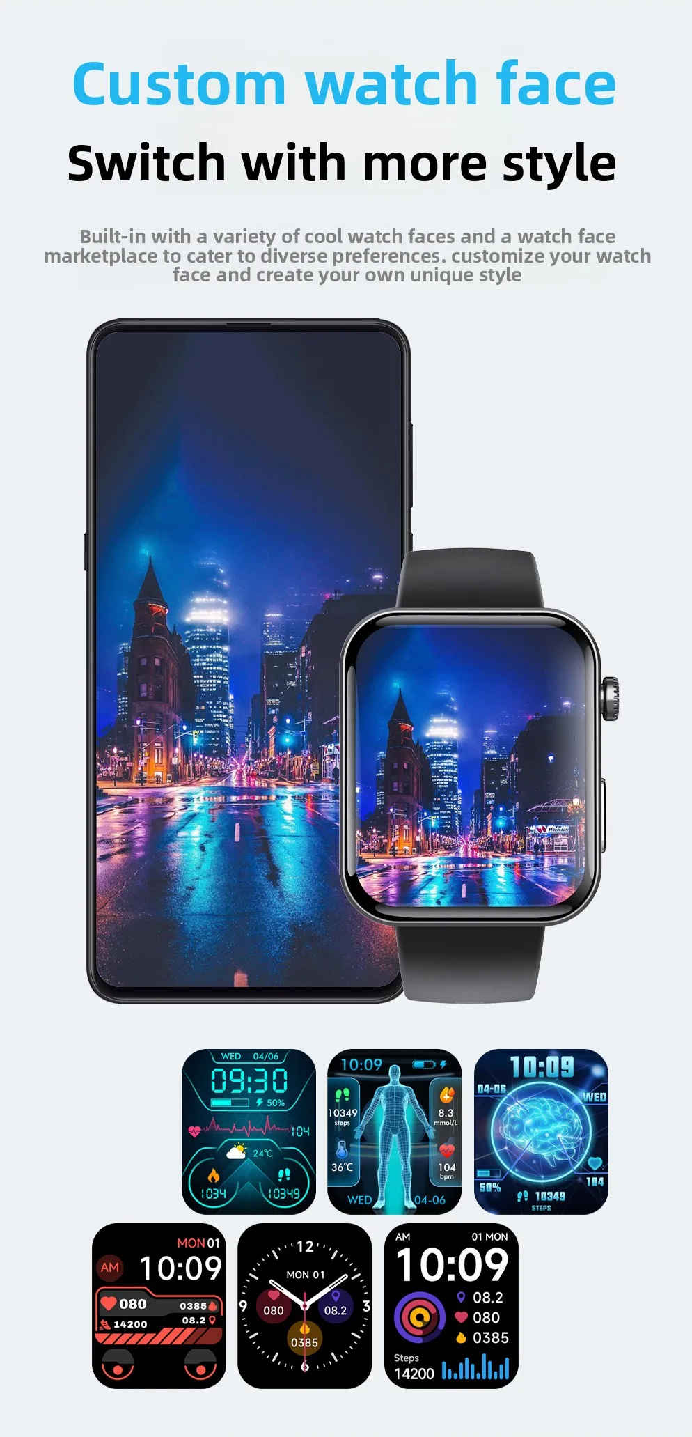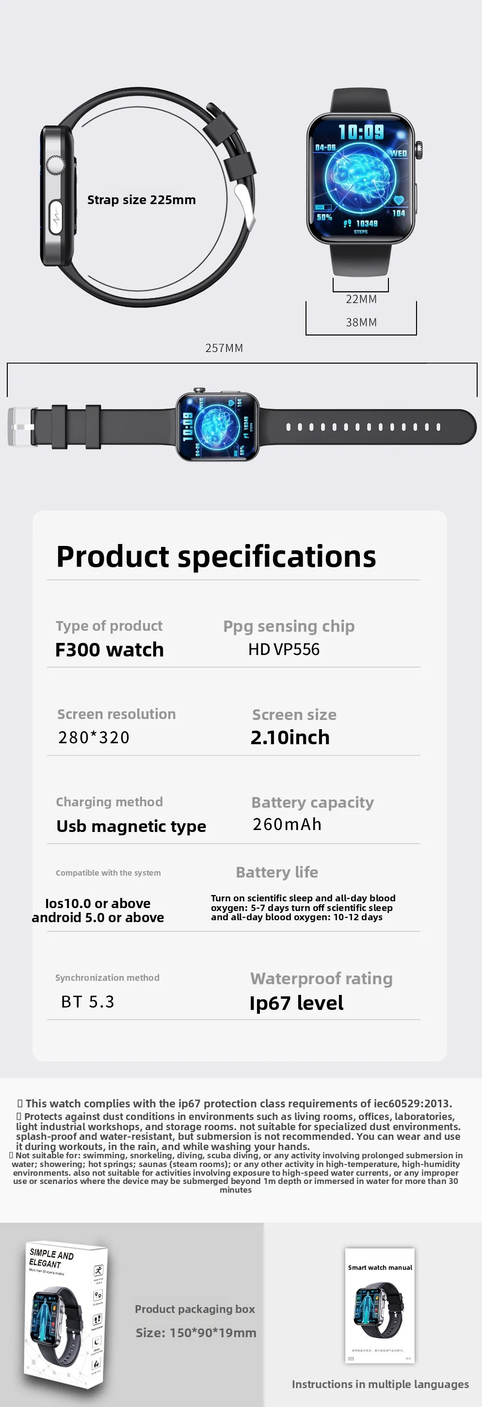 Discover the Mini F300 Smart Watch: Your Ultimate Companion for All-Day Heart Rate Monitoring, ECG Detection, and SOS Emergency Alerts with a Stunning Square Display
